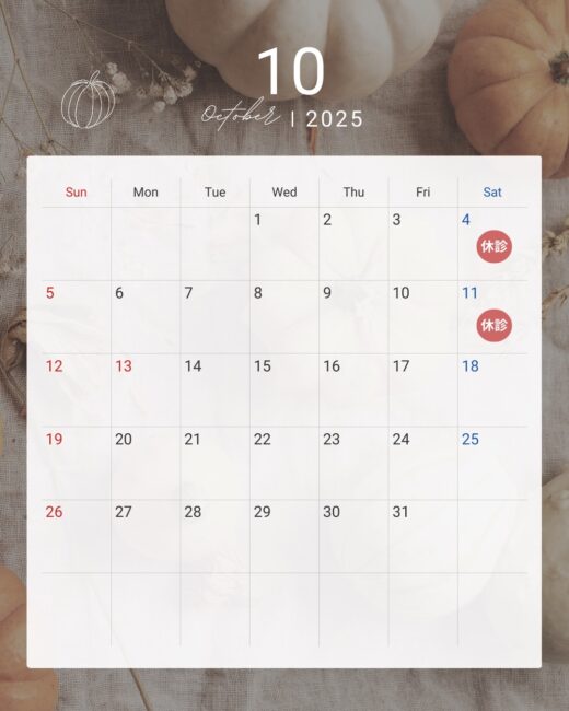 10月4日(土)、11日(土)は臨時休診とさせていただきます。